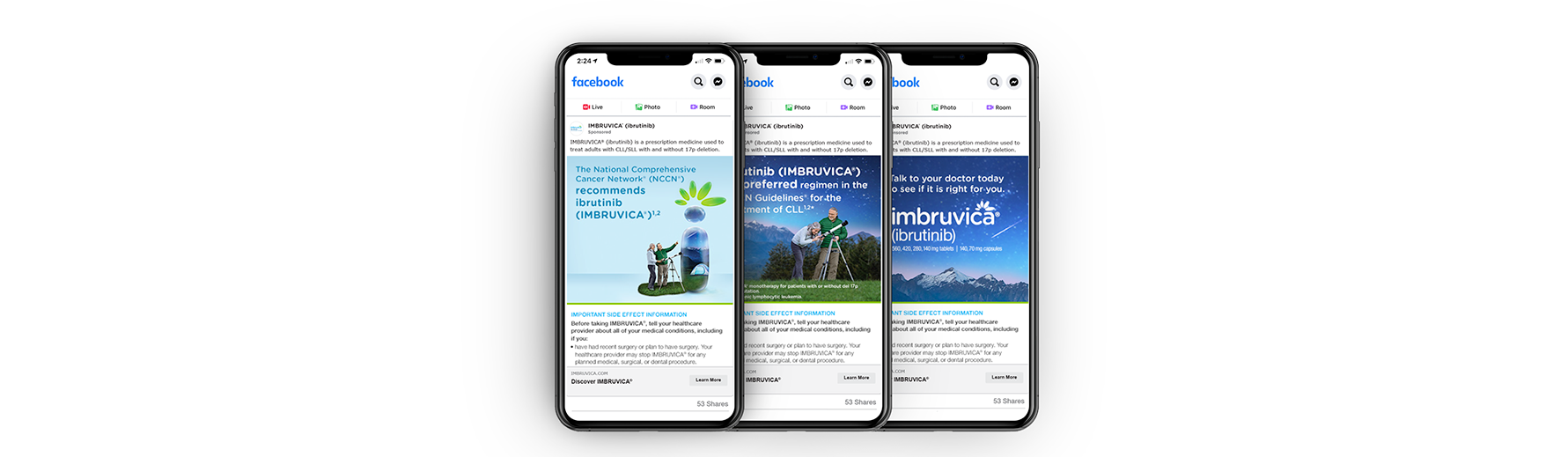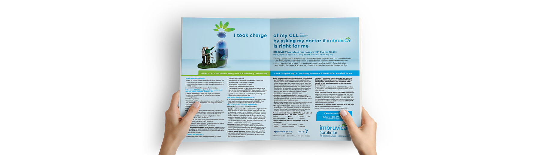 The campaign hero image capitalized on the shape of the once-a-day tablet to create a memorable iconic symbol that spoke to the many possibilities IMBRUVICA could bring patients. Through the āIā portal, the life of a CLL patient could be transformed.
